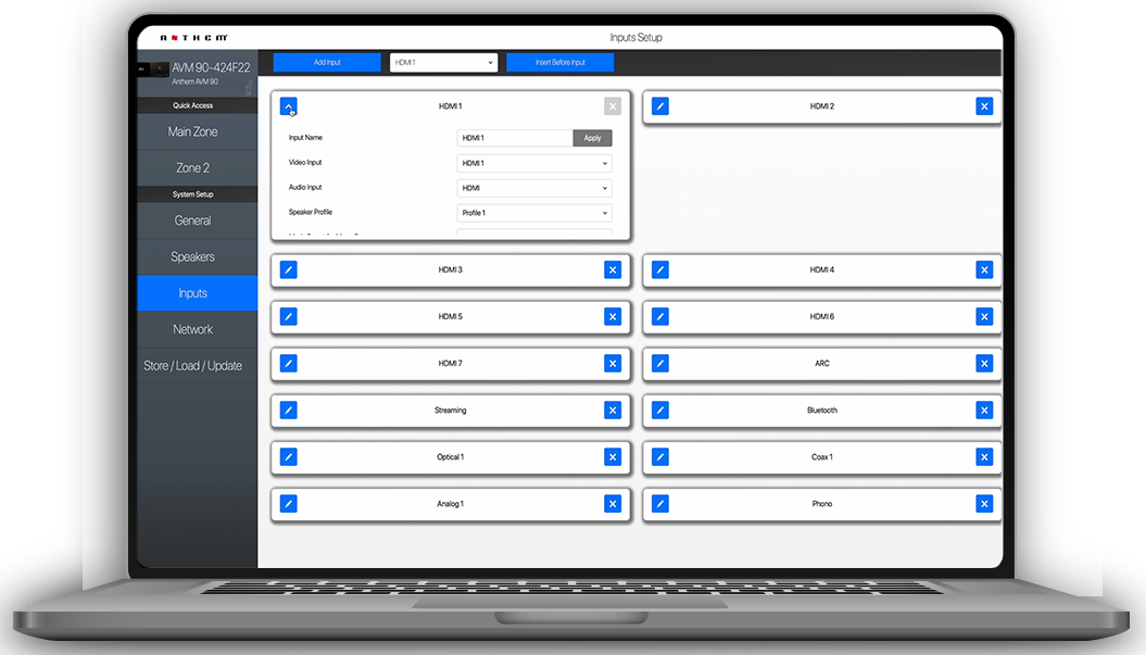 At Anthem, our goal is to shape how you interact with your technology, so we went the extra mile to ensure no detail is overlooked while providing the utmost flexibility when it comes to device setup. Using a phone, tablet or laptop, owners can easily access any function or setting and make changes on the fly. Power the primary or secondardy zone on and off, adjust volume, change audio modes, tweak channel trims and more, for a perfect surround sound experience. You're in control, and it's never been easier.