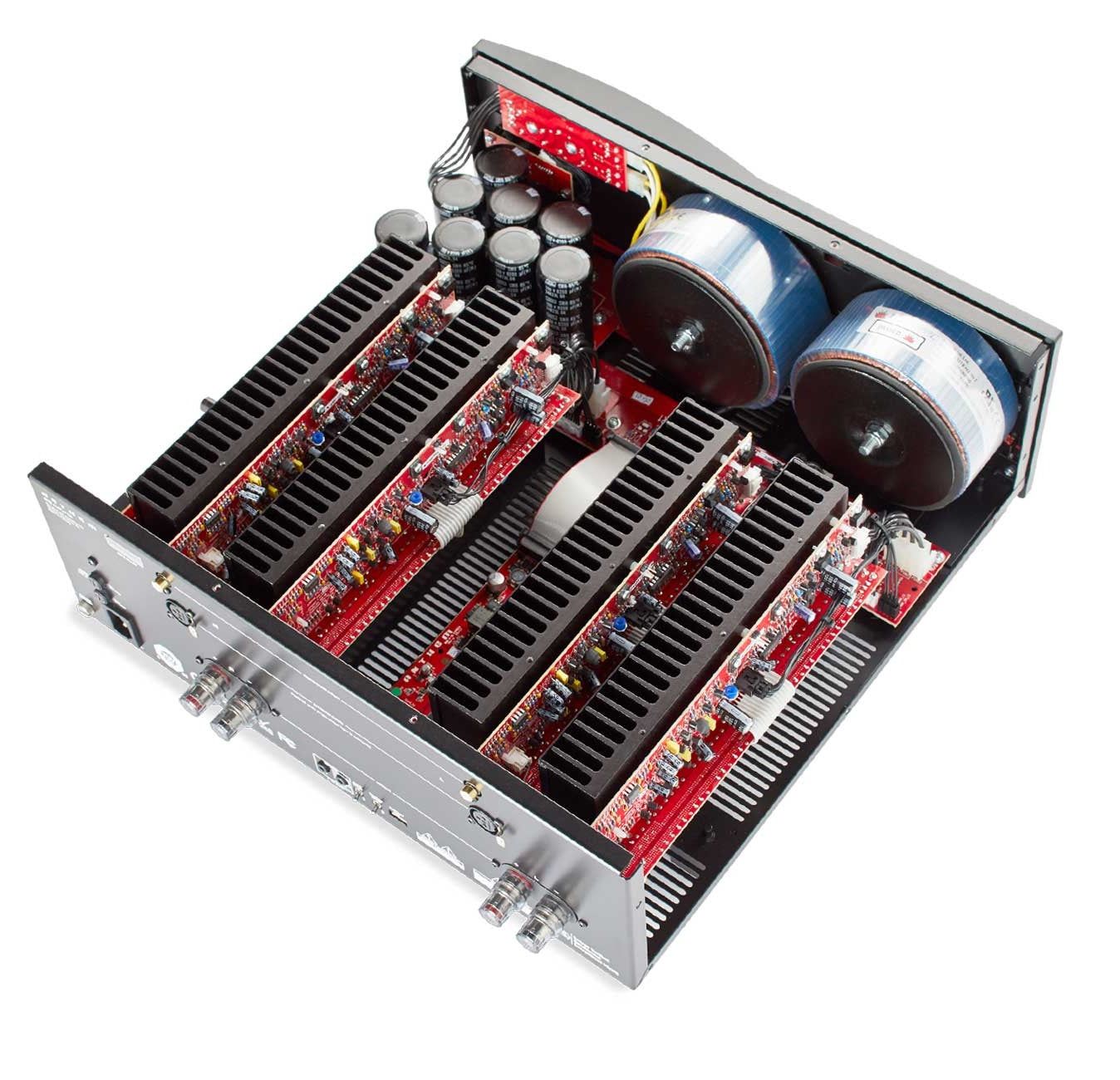 Conservatively rated, in a low-profile design shaped to minimize hum, the low-impedance toroidal power transformers — one for each channel — make no sacrifices when it comes to delivering a continuous supply of pure, clean, low noise power. As well, both the power supply impedance and internal cabling inductance are minimized to deliver a clear path for maximum power.