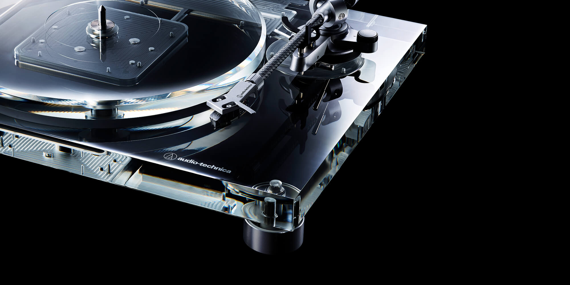 A stylish 30 mm-thick, high-density clear acrylic chassis reduces resonance and reveals the belt-drive motor – highlighting the turntable’s pure analog sound.