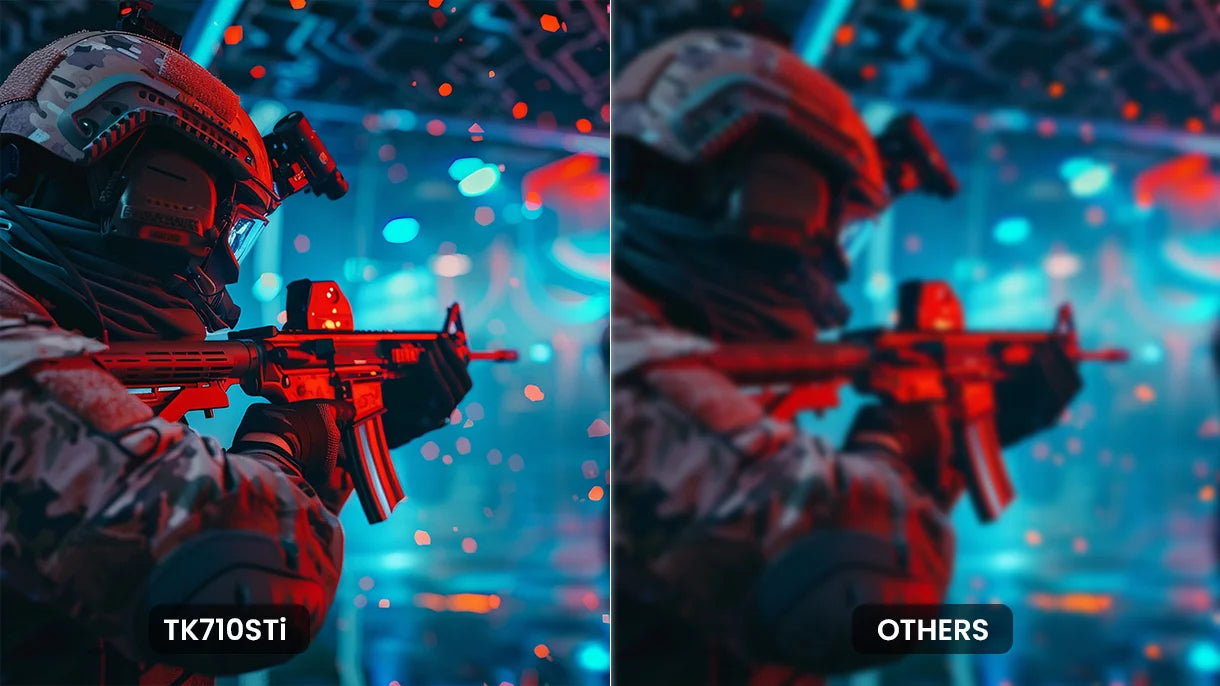 Elevate your entertainment with the TK710STi laser projector's enhanced color saturation and contrast. Enjoy crisp images, vibrant colors, and deep details that pull you into an immersive cinematic and gaming experience with friends and family.