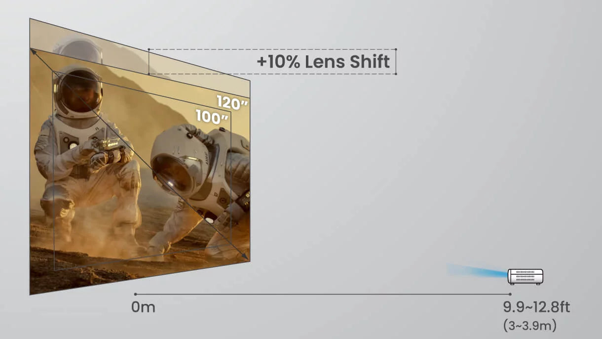 Vertical lens shift provides 10% physical movement range for perfectly straight-edged images without loss of resolution, allowing more flexible installation and placement options.