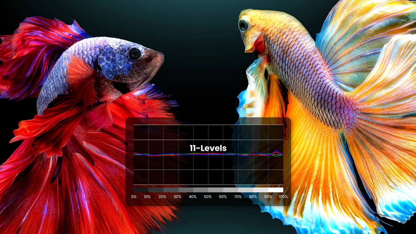 For ultimate color accuracy, BenQ high-end cinema 4K projectors provide advanced color temperature tuning with 11 top levels of white balance controls between high to low brightness, enabling content fanatics to adjust the most accurate mid-tone colors.