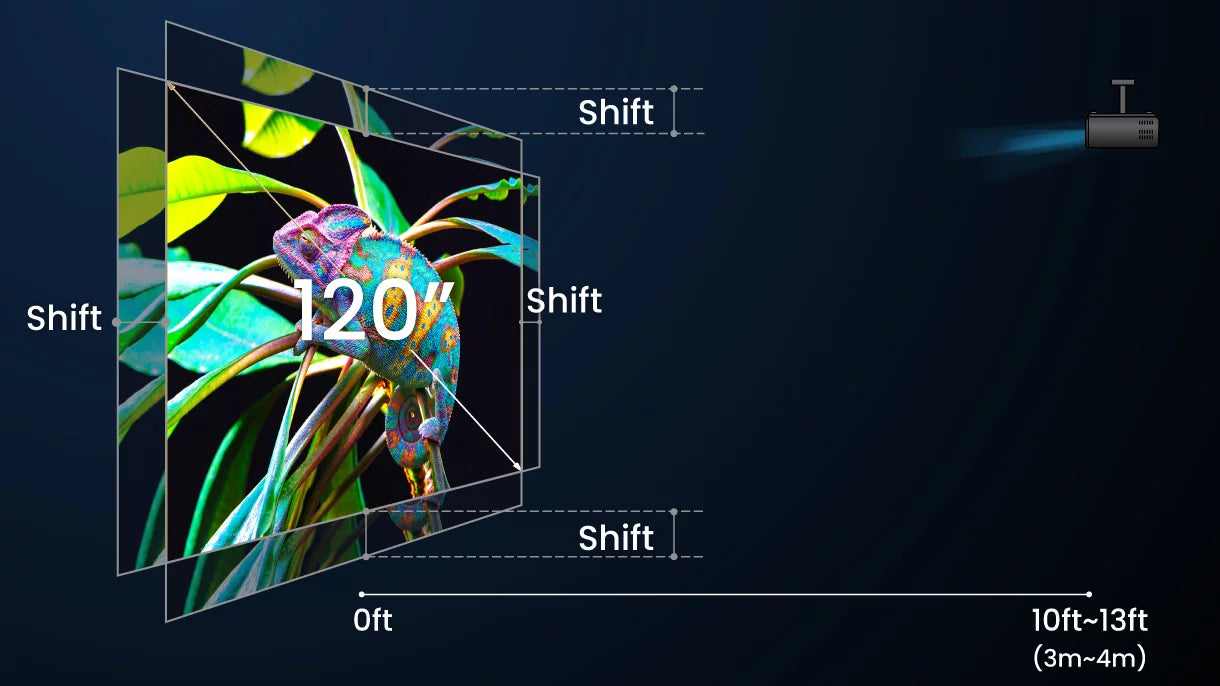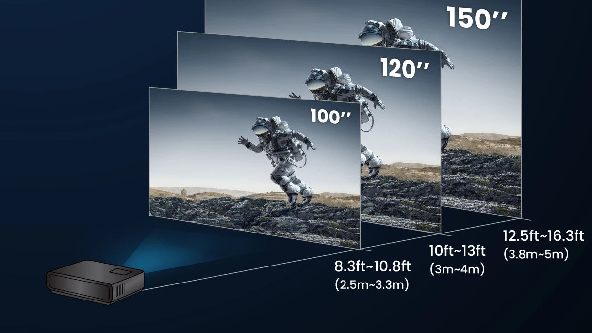 1.3x zoom maximizes available space with a range of throw distances for big-screen entertainment without the hassle of complicated installation.