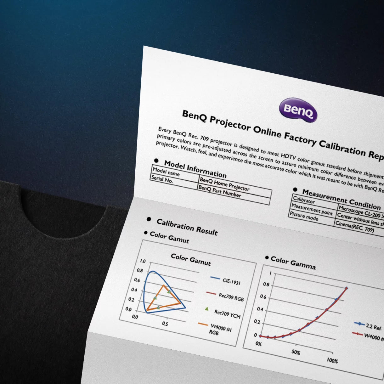 Individual factory calibration reports assure 100% Rec.709 Delta E<3 and total grayscale tracking within Delta E<2 with optimized Rec.709 color table for true Hollywood colors.