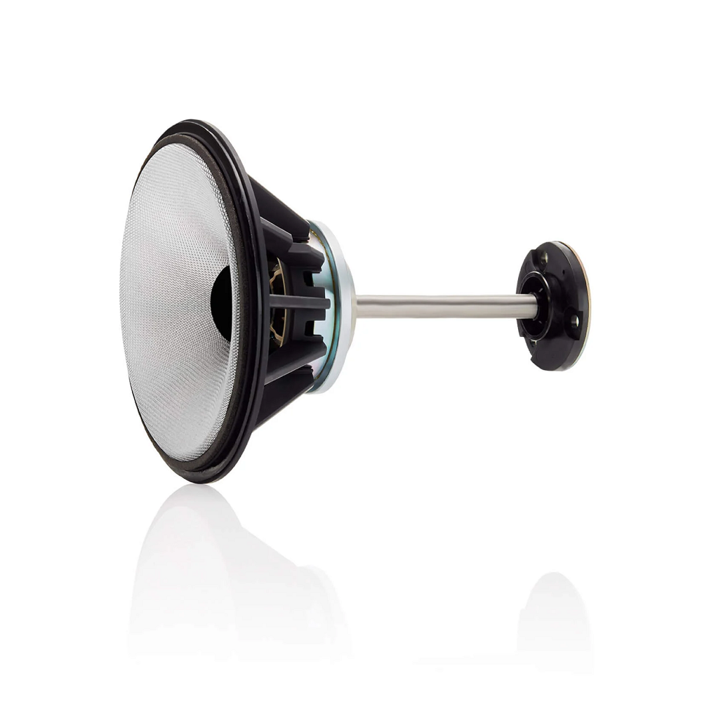 Our Aerofoil bass cone technology remains an outstanding solution to the conundrum of combining low mass and high stiffness in bass cones, thanks to its carbon-fiber skin and variable-profile foam core. Now, we have added the foam Anti-Resonance Plug for lower distortion and even cleaner bass.