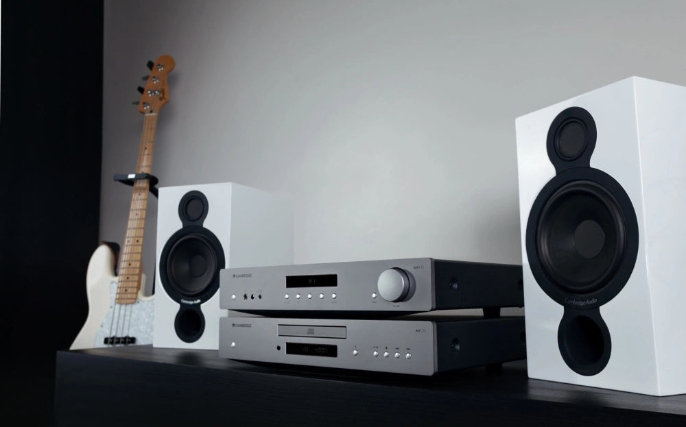 - Slim elegant design – classic hi-fi design, floating effect wedge front foot, lunar grey finish