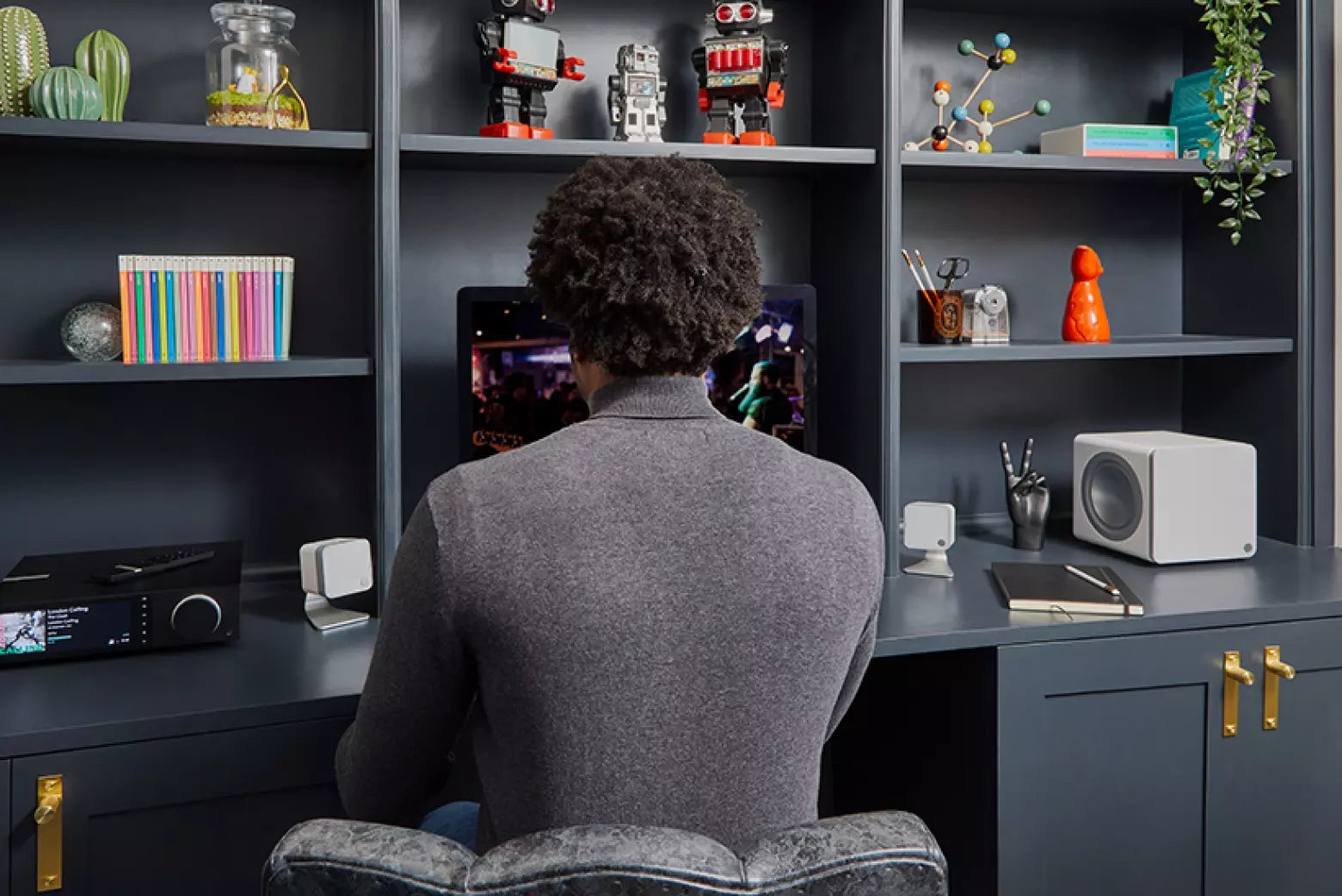 Minx X201 is an active subwoofer with 200 watts of power. Enough to add a rich, deep bass to smaller and medium sized spaces – such as home offices, where it’s at home tucked away on the corner of the room. The perfect accompaniment to a pair of Minx compact speakers.