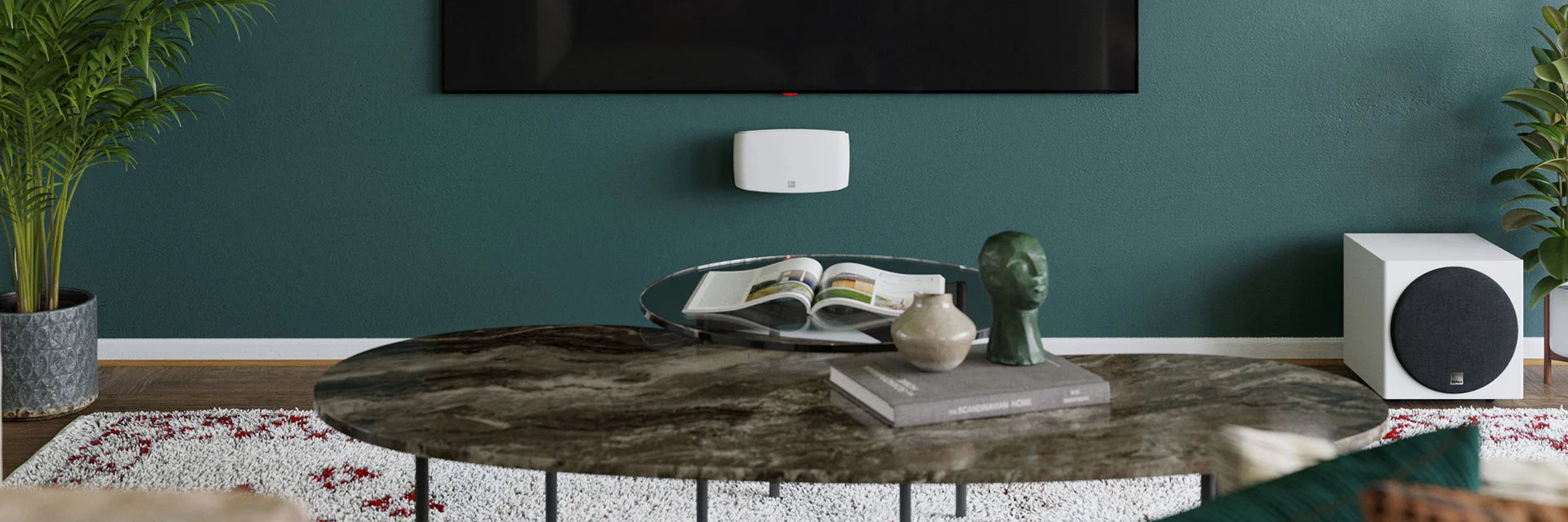 Placing a subwoofer is a large part of creating the perfect audio reproduction. To maximise bass output and distribution around the room, we recommend placing the SUB E-9 F in a corner or, if that's not possible, along a wall. The relatively compact size of the subwoofer makes for flexible placement, compared with larger subwoofers, and is a great match for our OBERON, FAZON and SPEKTOR series speakers.