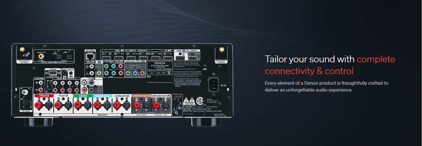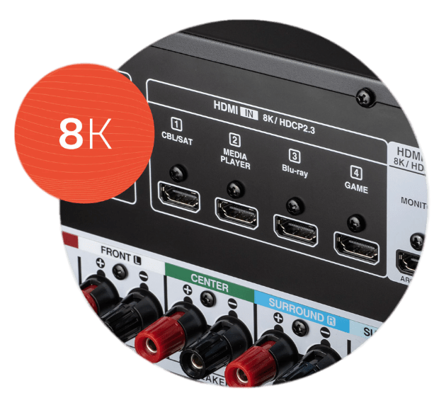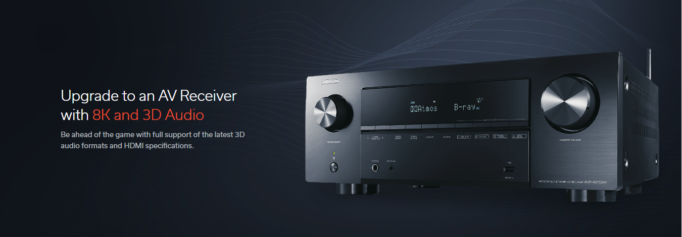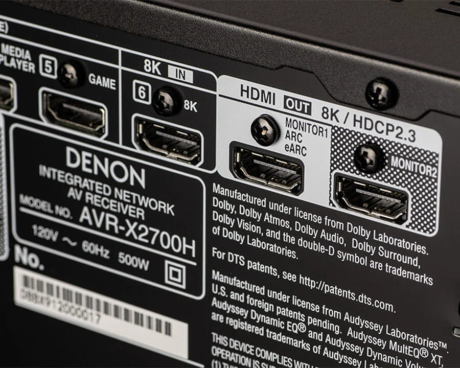 Enjoy your favorite movies, shows and games with the best picture quality available. The AVR-X2700H features an advanced HDMI section (6 in/2 out) with a dedicated 8K input that will support 8K/60Hz and select 4K/120Hz* video pass-through and upscaling.