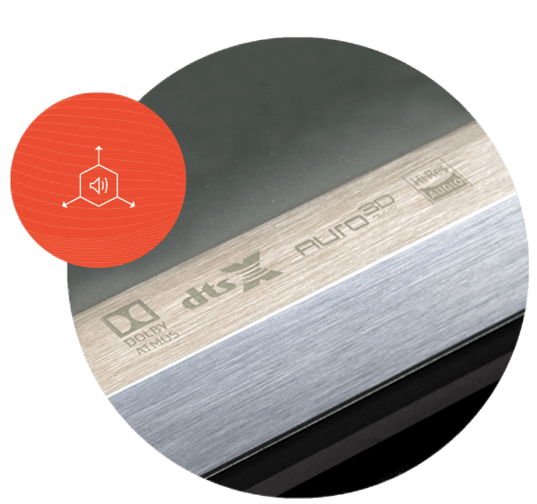 Immerse yourself in 3D audio with Dolby Atmos®, Dolby Atmos Height Virtualization Technology, DTS:X® and DTS Virtua|:X*”'. Set up a 5.1.2 Dolby Atmos surround system using Dolby Atmos elevation speakers, or dedicated overhead speakers, for the ultimate home theater experience.