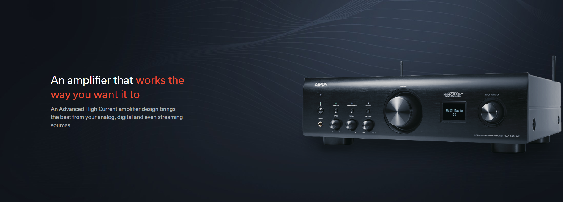 Engineered with premium Denon amplifier technology and Advanced High Current capability, the PMA-900HNE integrated amplifier drives your loudspeakers with 85 watts of power-per-channel into 4 ohms.