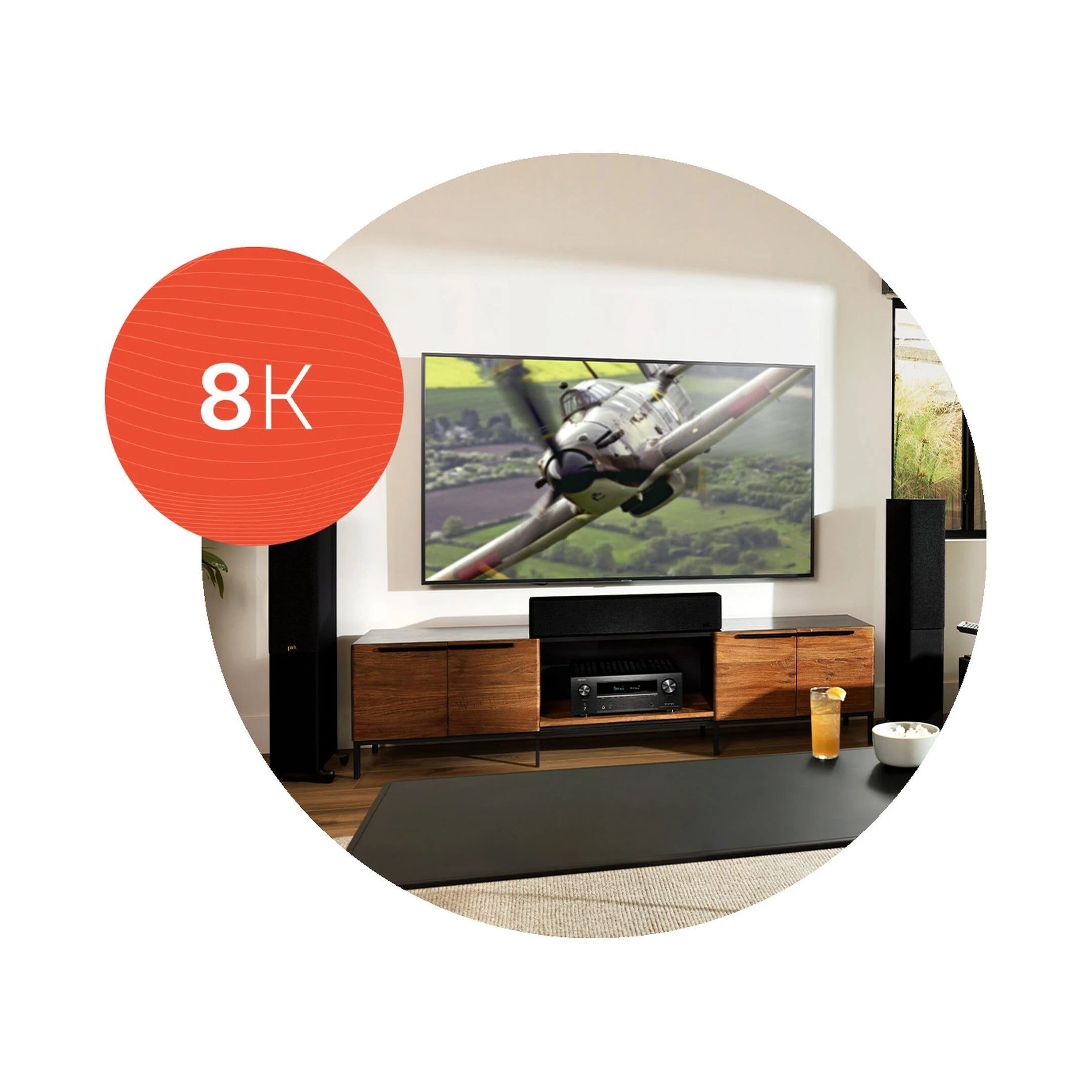 8K video is supported on three of six HDMI inputs and one of the two outputs. Enjoy easy video compatibility and great picture quality with HLG, HDR, Dolby Vision, HDR10+, and Dynamic HDR pass-through.