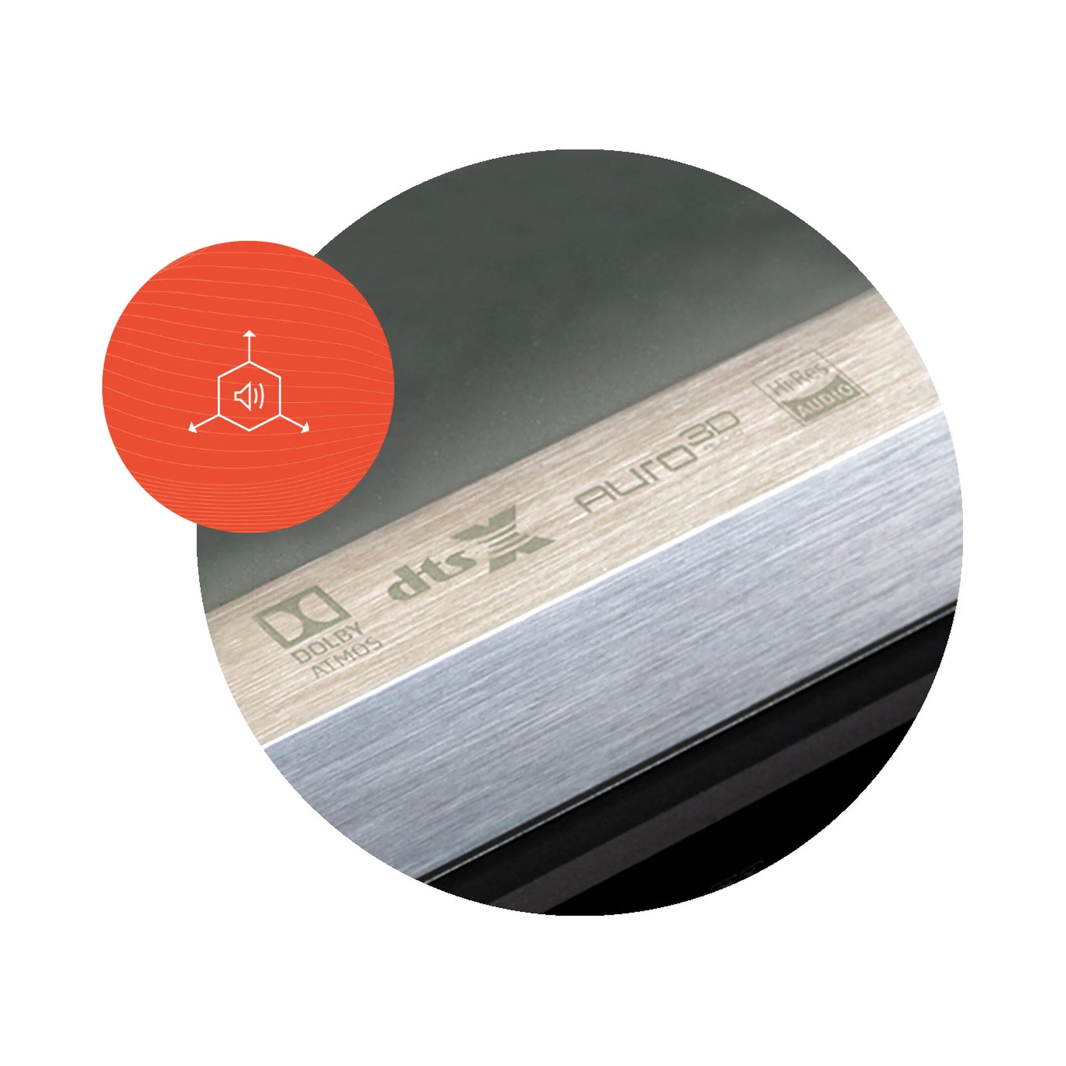 - Features Dolby Atmos, DTS:X, and Height Virtualization for immersive 3D audio