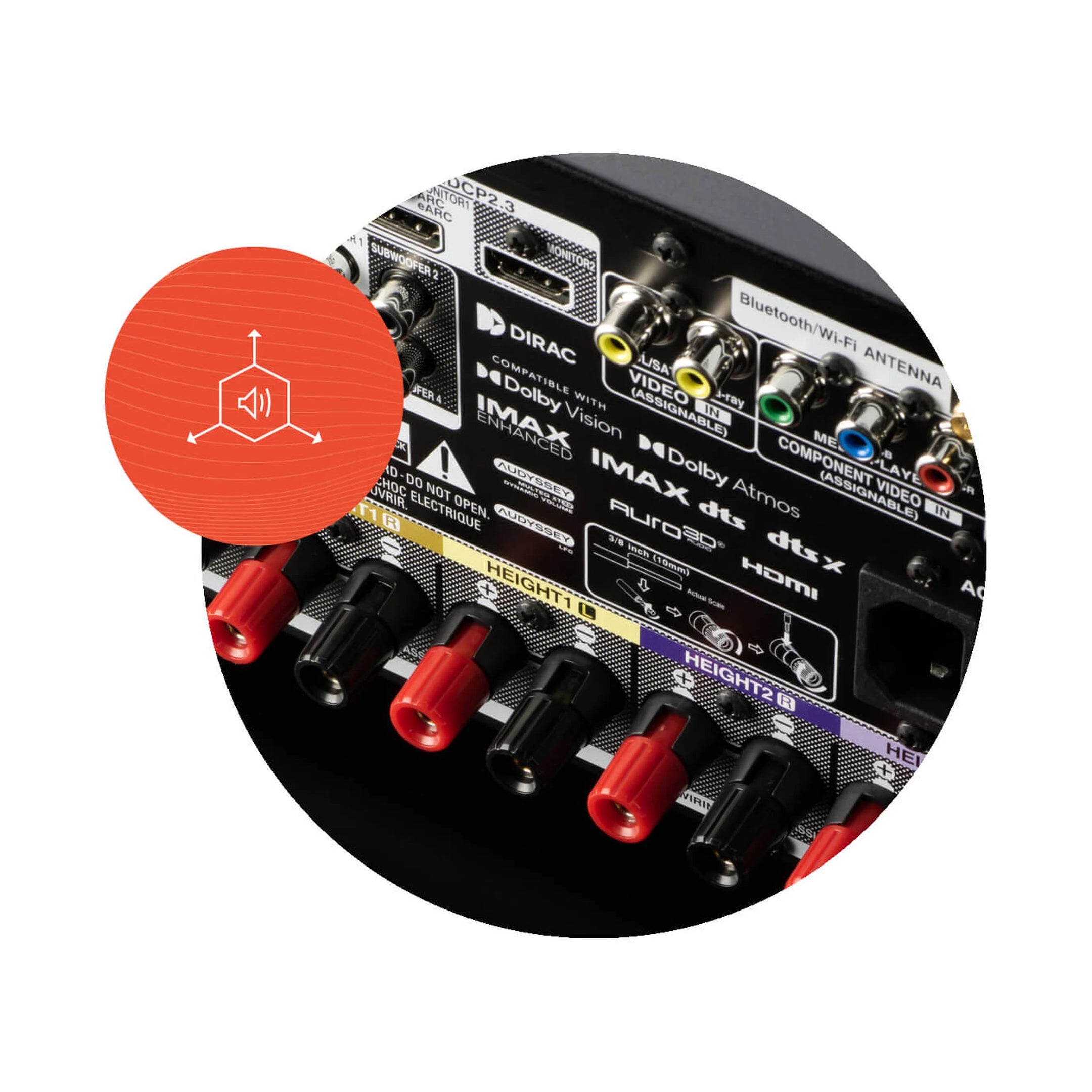 Get enveloped in sound with Dolby Atmos®, DTS:X®, IMAX Enhanced, and Auro 3D, along with Dolby Surround, DTS Neural:X, and Auro-Matic upmixer to optimize legacy content.