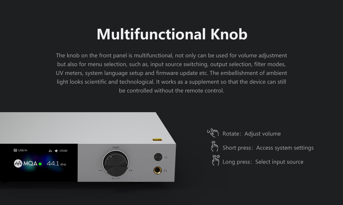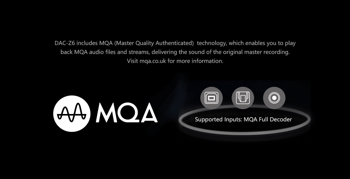 - Optical, Coaxial and USB support MQA full decoding and rendering.