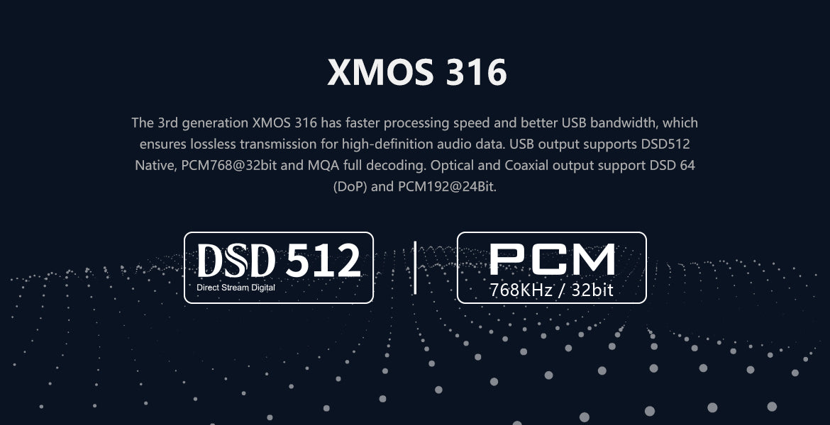 - Up to DSD512 Native, PCM768Hz@32Bit decoding.