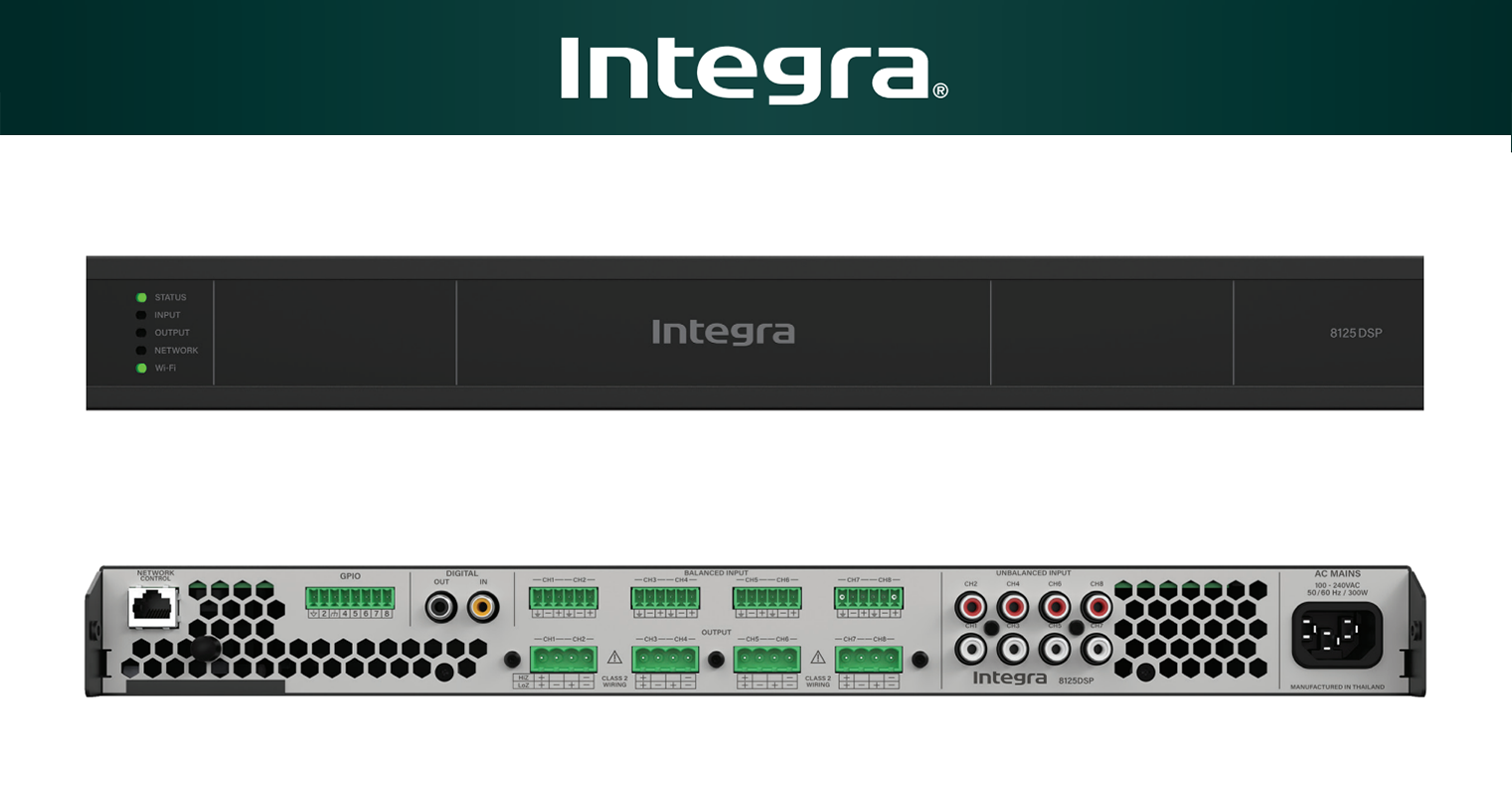 The Integra 8125DSP is a high-performance 8-channel professional power amplifier with integrated digital signal processing (DSP), engineered for custom audio installations in both commercial and upscale residential environments. Designed to deliver clean, reliable amplification with advanced control and network features, this unit combines Class-D efficiency with flexible configuration tools to support multi-zone and multi-speaker audio systems. It is ideal for large open spaces such as restaurants, gyms, hospitality venues, corporate offices, and anywhere distributed audio is required.