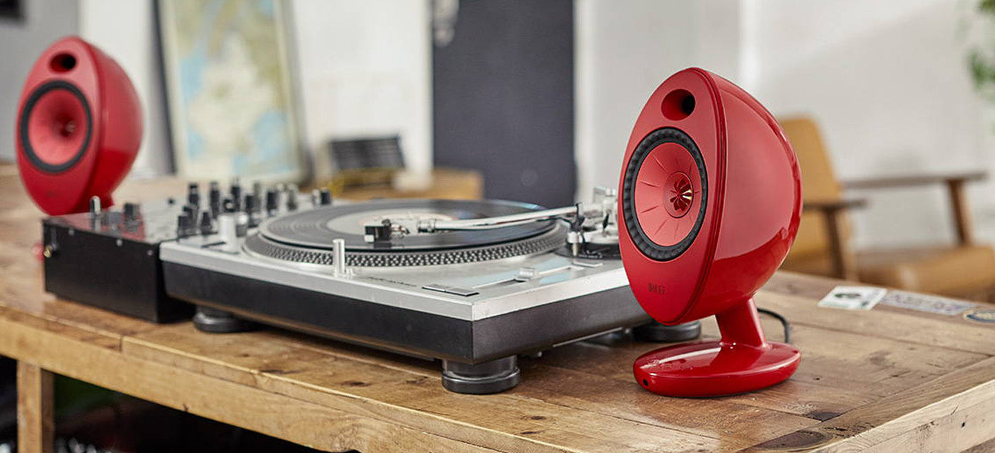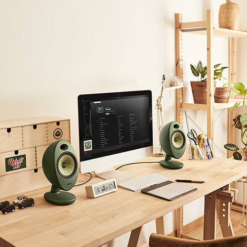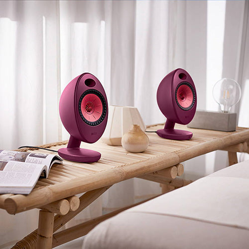 KEF EGG DUO is a complete powered speaker solution with built-in amps and multiple connectivity options, delivering high-resolution audio for home, office, or studio setups.
