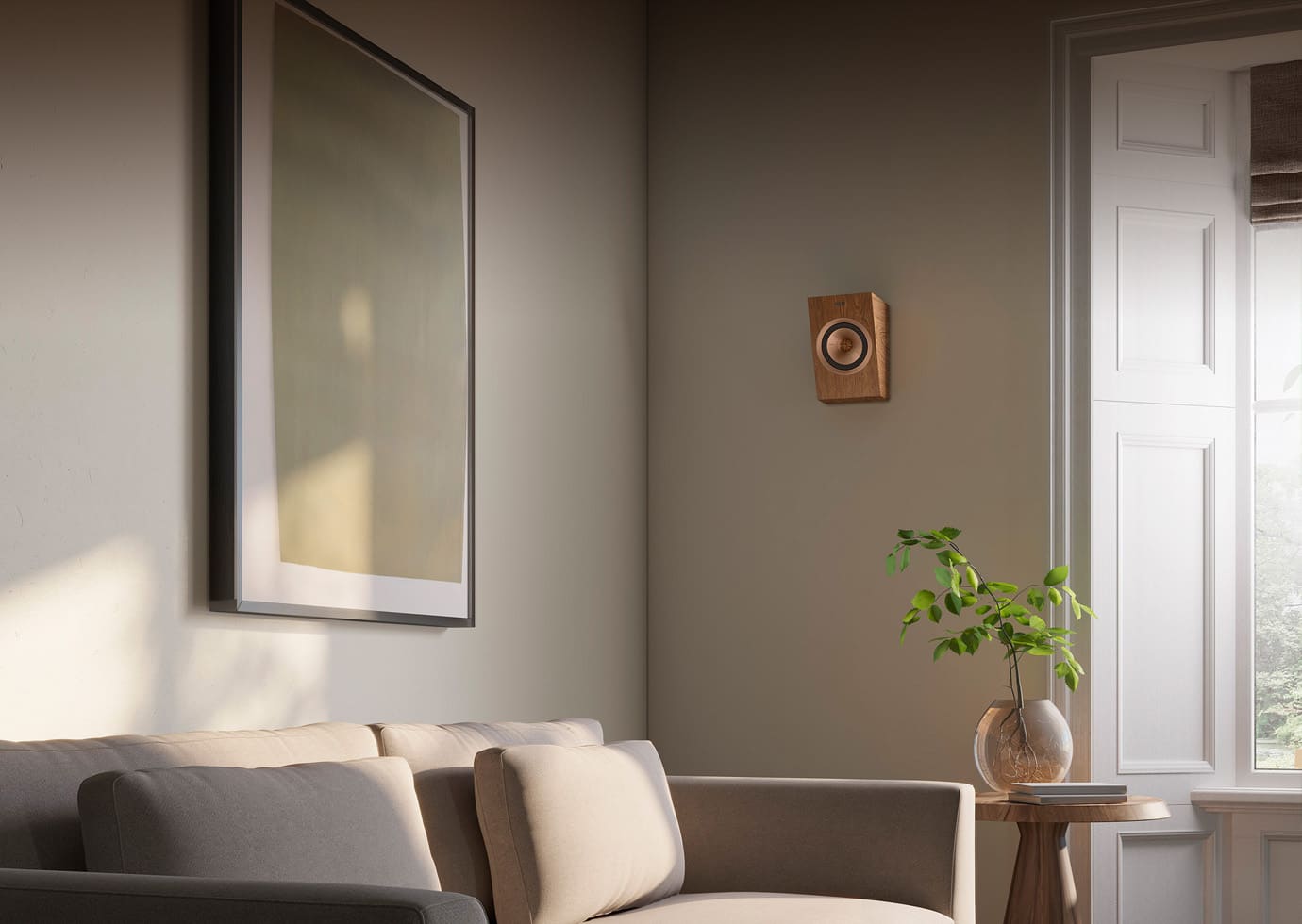 - Can be wall-mounted or placed on top of speakers for Atmos effect