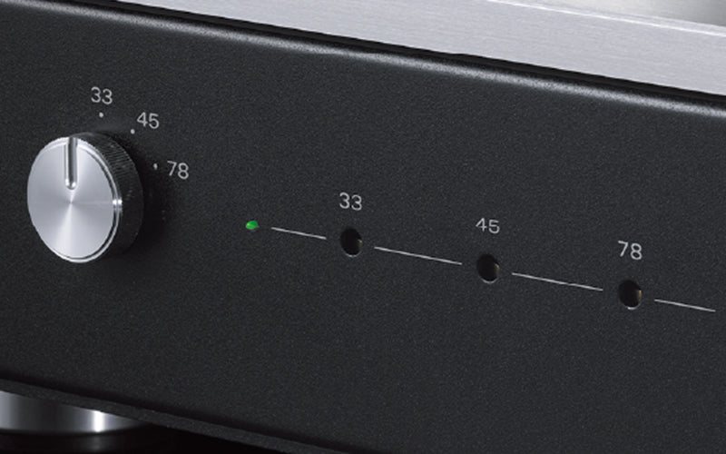 The PD-151 MARK II supports three rotation speeds: 33 1/3, 45 and 78 rpm. With the whole system prepared independently for each rotation speed, it is possible to make fine and accurate adjustments while observing the rotation speed deviation indicator (LED)*.