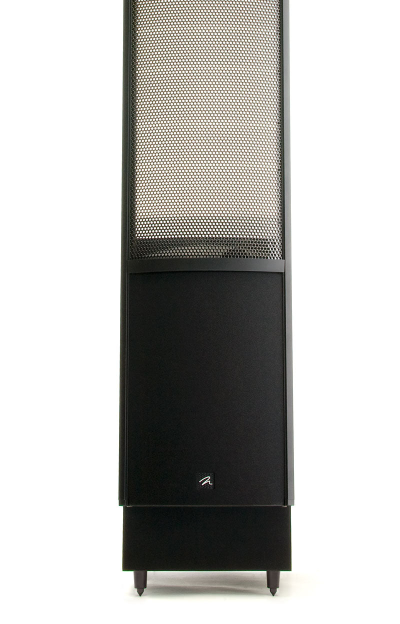 ElectroMotion ESL's XStat electrostatic MicroPerf panel is housed within a radical aluminum and composite AirFrame™ similar to those found on MartinLogan's flagship products. AirFrame technology rigidifies the electrostatic panel without obstructing playable surface area or interfering with ambience enriching dipole sound radiation. At the same time, an AirFrame provides electrical and acoustical isolation, minimizing intermodulated distortion caused by vibration and resonance while enhancing imaging, low-level sonic detail, accuracy, and efficiency. MicroPerf design optimizes the individual holes of The EM-ESL's electrostatic panel. MicroPerf design substantially increases diaphragm radiating area, compared to early generations—without compromising structural integrity. The resulting increase in output capability and efficiency allows The EM-ESL's panel to enjoy a substantial leap in bandwidth and dynamics without growing larger. For example, The EM-ESL's XStat electrostatic panel features 129 square inches of sound radiating surface on both the front and back and a sensitivity of 91dB into 6 Ohms. The Aerius, well received its day, only had 93 square inches and a sensitivity of 89dB into 4 Ohms.