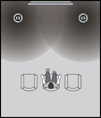 TWO at the rear of a room for wide dispersion 5.1 left/right rear channels.