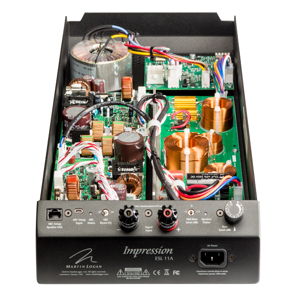 We’ve also considered the signal you will feed your loudspeakers and have engineered Impression ESL 11A to work well with practically any type of electronics. MartinLogan’s state-of-the-art toroidal transformer and electrical interface engineering ensure an absolutely transparent link from amplifier to electrostatic panel and woofer array. This produces sound of unparalleled purity, precision, clarity, and openness — the next best thing to no speaker at all.