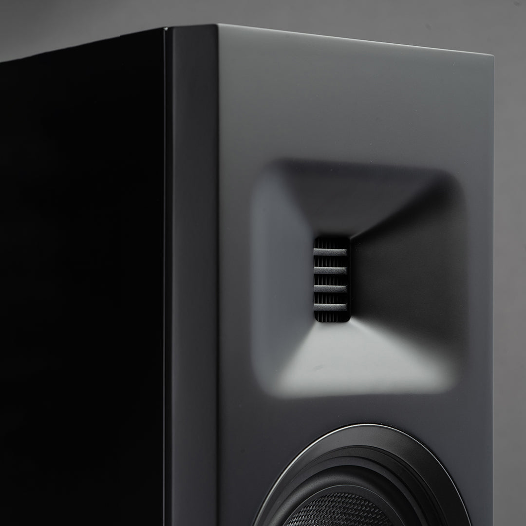 After an extensive evaluation of nearly 50 design options, the Folded Motion® Waveguide profile was meticulously chosen to harmoniously align with the dispersion of the midrange drivers, resulting in enhanced output. The waveguide guarantees consistent sound quality regardless of the listener's position and minimizes unwanted room reflections. Proper waveguide design is crucial as it helps control the sound's dispersion pattern, ensuring that the sound is evenly distributed across the listening area and resulting in optimal sound quality.