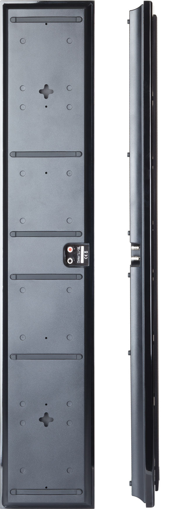 The secret to the Motion SLM's outstanding performance is the innovative dual 4-inch, ultra-slim fiber cone woofers and dual 4-inch high-velocity passive bass radiators, paired with a Folded Motion tweeter to create stunning acoustical alchemy typically found in much larger speaker systems. Hidden discretely underneath the grille, the drivers are held securely in place by a solid, black-anodized brushed aluminum baffle. The high-gloss black SLM cabinet is only 1.45-inches thin, for a total wall protrusion of 1.83-inches with magnetic grille and included wall mount bracket.