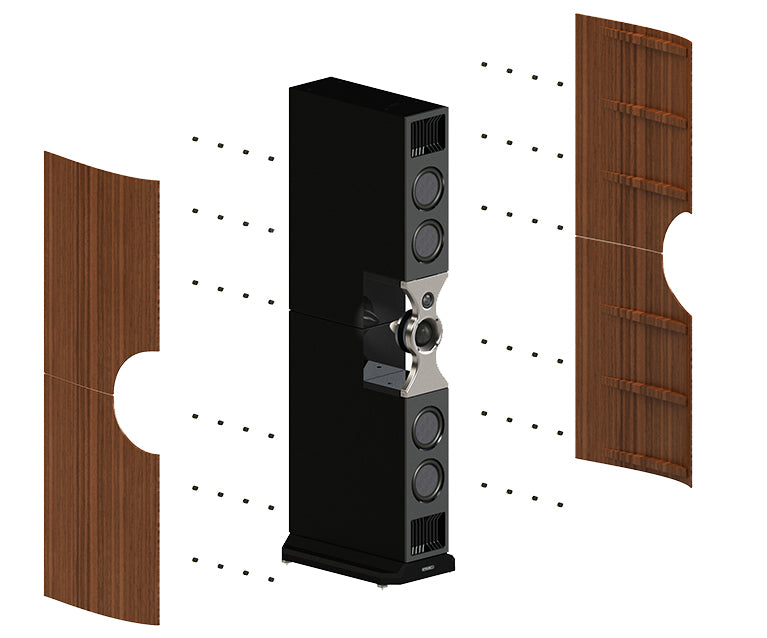 As well as acoustically damping the nest to prevent distortion in fenestria's mid-range and treble drivers, to reduce unwanted low-frequency vibration from the bass drivers and ATL, we employed an innovative design concept derived from technology used to prevent earthquake damage to tall buildings. The planar sides of the speakers move in opposition to the unwanted vibrations, cancelling them out