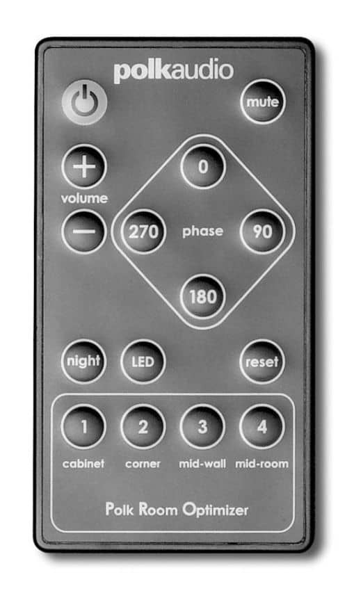 Polk Room Optimizer (PRO) features four-way phase selection, four presets and an easy-to-read, blue status LED so you can adjust your subwoofer for optimal performance without leaving your seat.