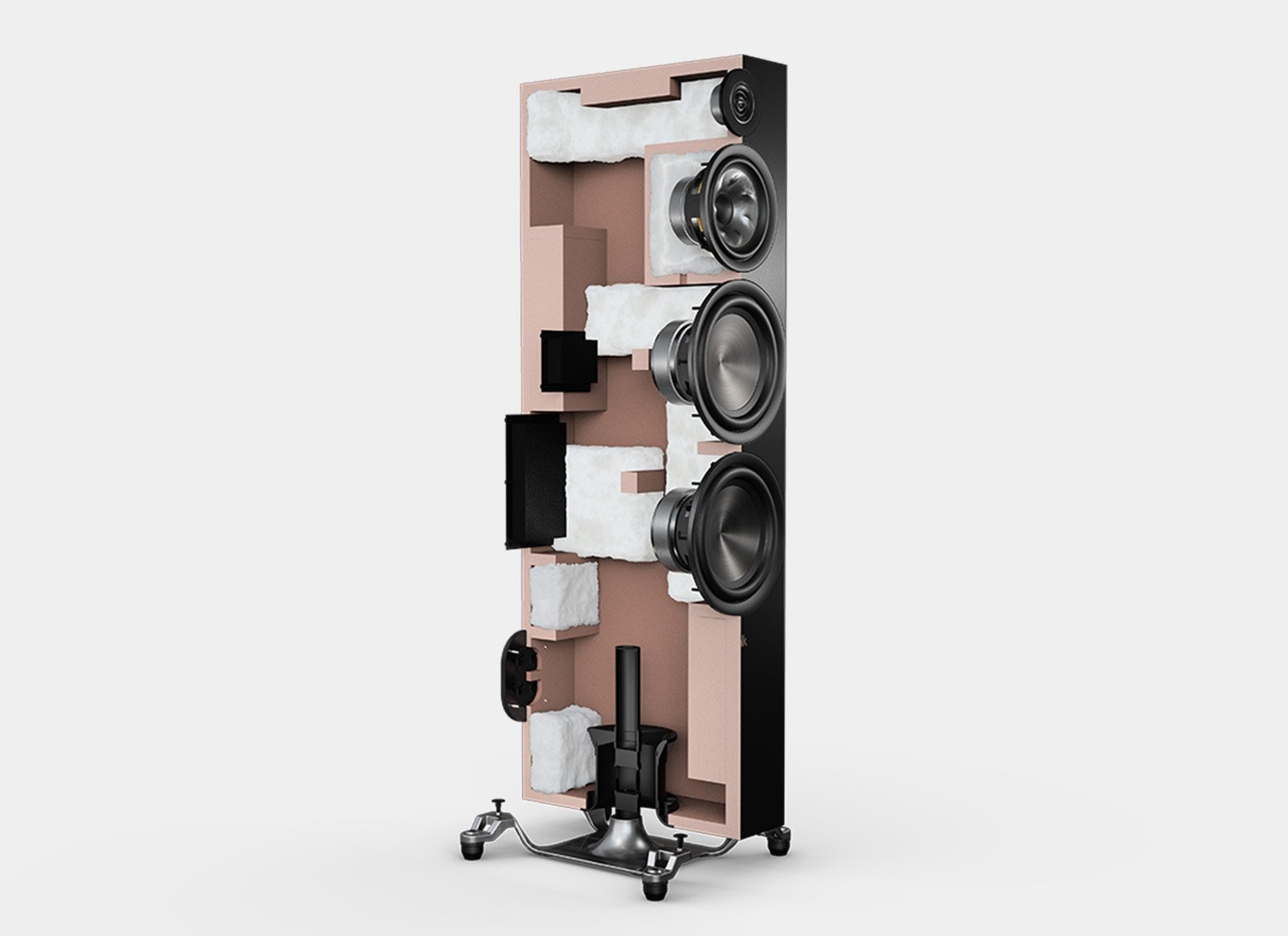 Reserve’s sleek cabinetry hides a world of audio innovation. Cabinets are carefully cross-braced to best eliminate unwanted interior resonances. Rounded exterior corners help disperse sound broadly around the room with minimal diffraction, creating an open sound stage.
