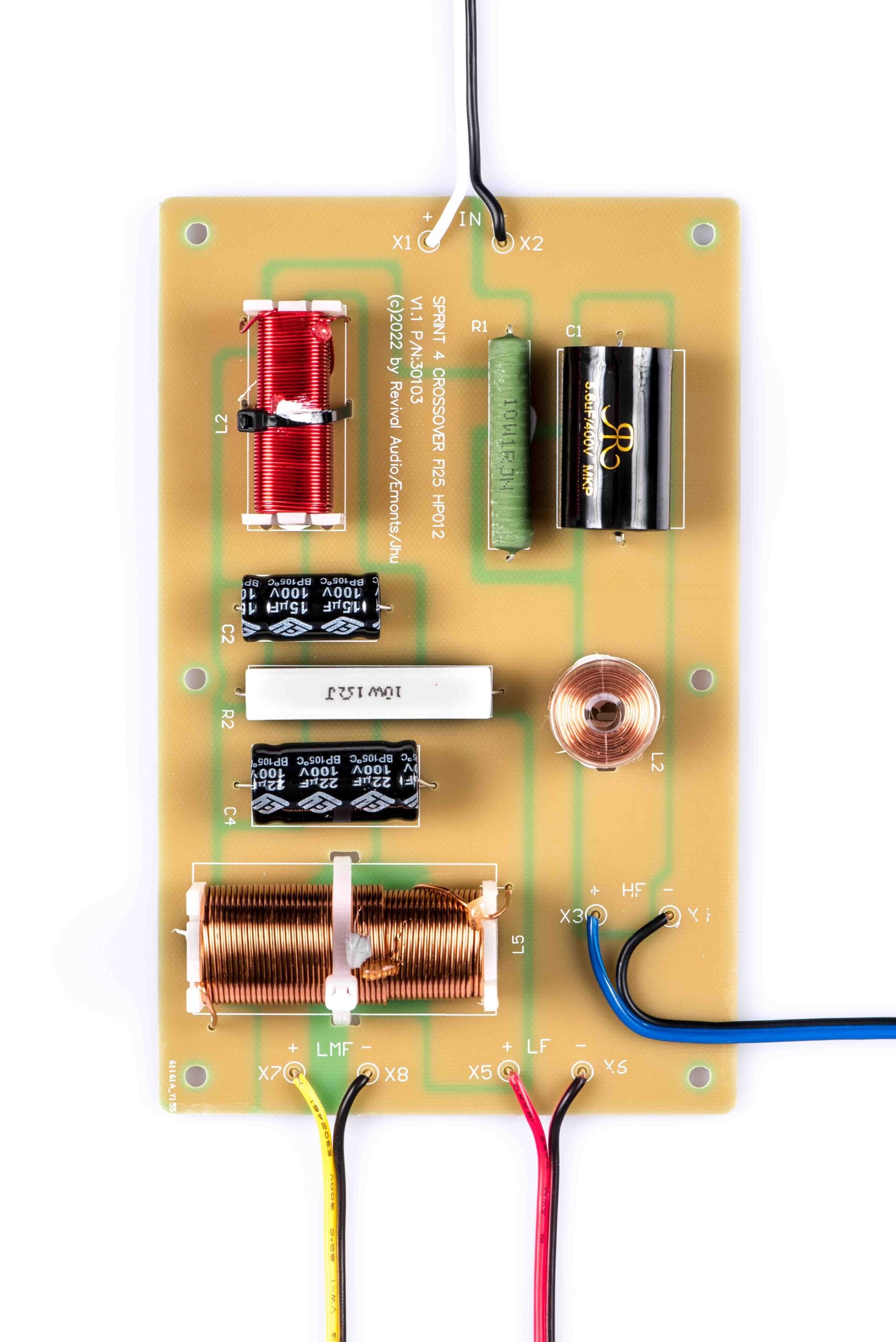 At Revival Audio we tune the crossover by hand, by placing real components on one tuning board and measuring the results. When done, we listen (a lot) and fine-tune, after that, we check again with measurements that we went in the right direction.