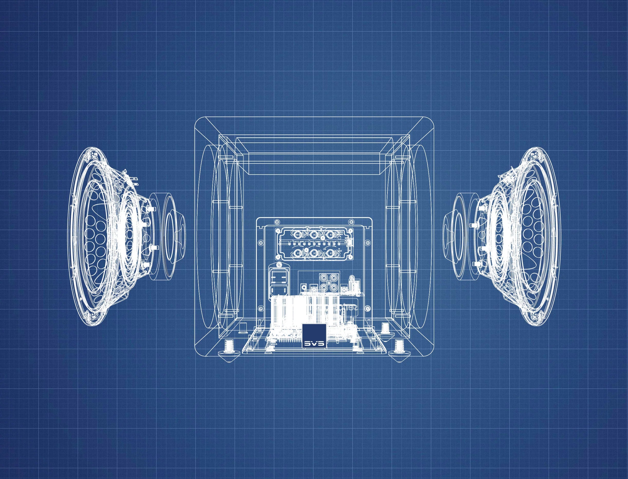 A driver is only potential and requires and equally potent amplifier. Extreme challenges existed for SVS engineers when designing an amplifier capable of powering fully active dual 8-inch drivers at reference levels in a micro-sized cabinet. How to maximize SPLs while maintaining accuracy? How to optimize on the potential of room gain? How to maintain proper cooling while achieving massive SPLs?