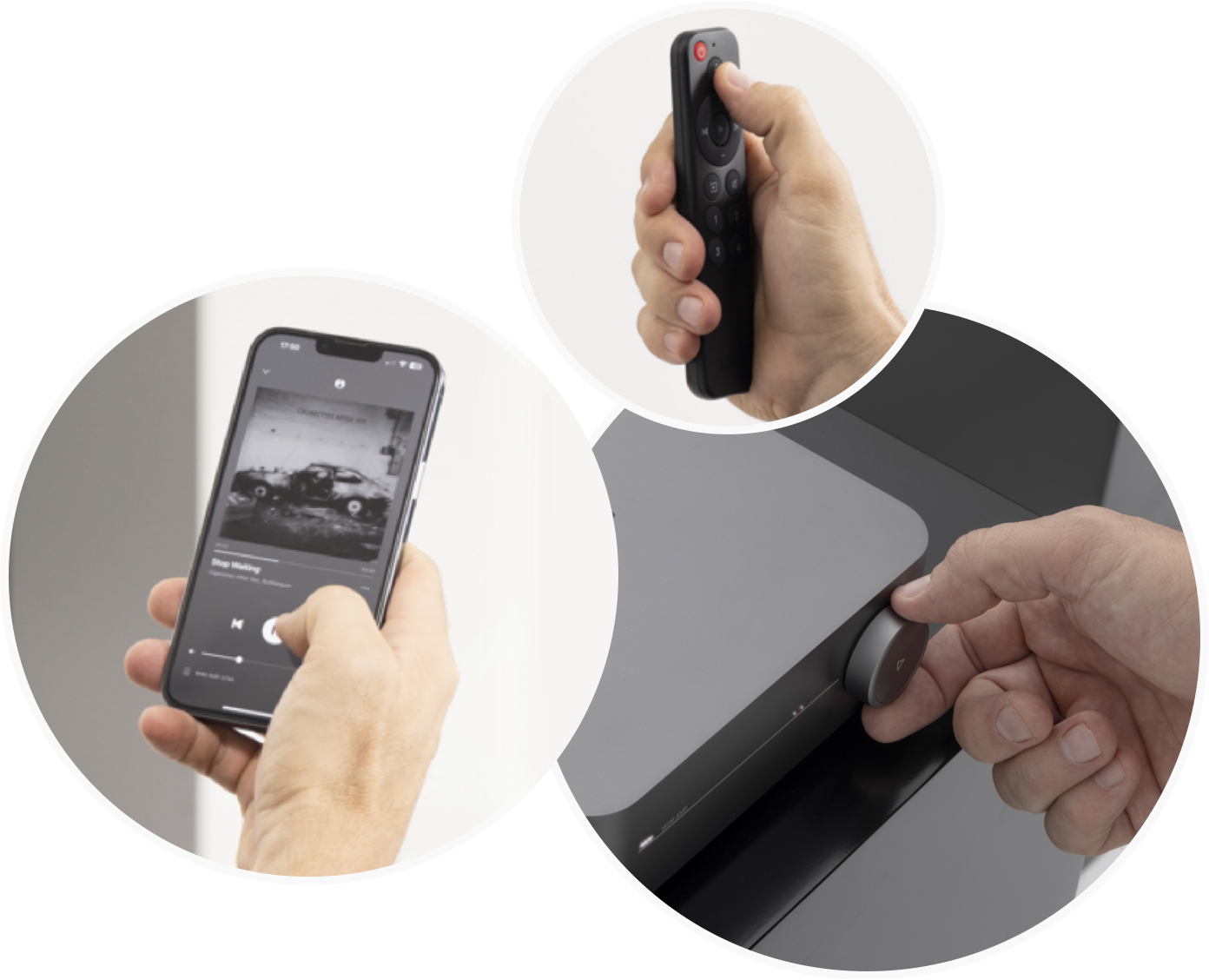 Master your audio universe with the WiiM Home App. Stream from top music services and manage your system effortlessly, room by room. Adjust volume, sync speakers, save favorites, set alarms, and tweak settings—all in one place. Prefer your go-to music app? No problem, play straight from it. Plus, go hands-free with voice commands. Whether you're using Alexa, Google Assistant, or Siri, control is just a word away, even with the included voice remote.