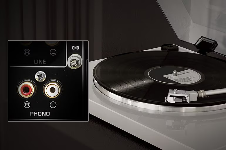 The comprehensive connectors of the R-N1000A include special phono input terminals, letting you easily connect a turntable and enjoy music from your vinyl record collection.