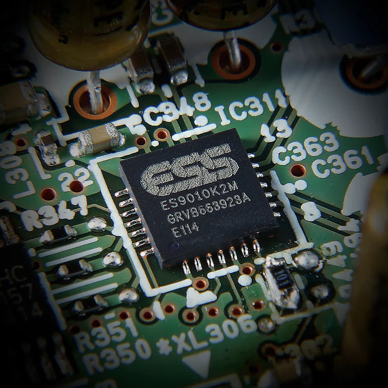 - Features an ESS SABRE ES9010K2M 384 kHz 32-bit DAC for superior audio quality.