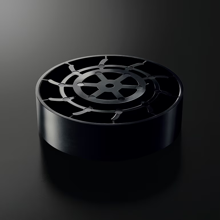 The R-N800A also employs anti-resonance feet designed under a concept of vibration absorption. By arranging thin curved reinforcing bars on the outer periphery and thick straight reinforcing bars in the center, the vibration energy transmitted from the outside of the leg is effectively dispersed and diminished, while maintaining high central rigidity. These make it possible to reproduce a focused sound that lets you fully feel the rhythm and dynamics of the music.