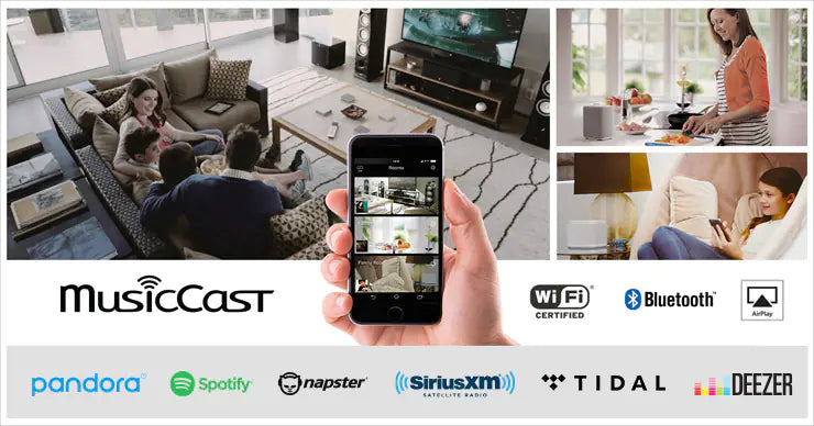 - MusicCast wirelessly connects compatible Yamaha components for whole-home audio