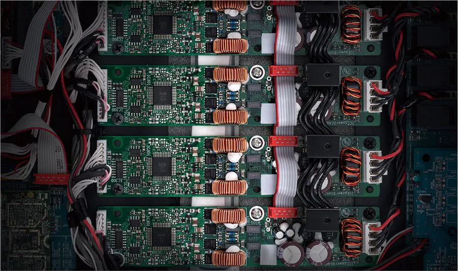 No ordinary amp, the QS employs ultra-efficient ICEpower integrated circuits to deliver eight channels of pristine, musically-dynamic digital amplification at 50 watts/channel (8 ohms) with an outstanding 10 Hz to 22 kHz (+0/-3 dB) frequency response and 106 dB signal-to-noise ratio. It is 4 ohm capable at 100 watts/channel and bridgeable to 200 watts/channel (8 ohms).